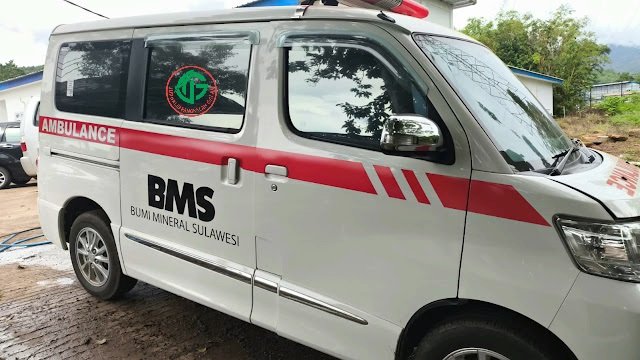 AMBULANCE - Mobil ambulance milik PT Bumi Mineral Sulawesi (BMS) di Kecamatan Bua, Kabupaten Luwu, Sulawesi Selatan. Mobil perusahaan itu membantu evakuasi warga yang mengalami kecelakaan di Deaa Bukit Harapan.