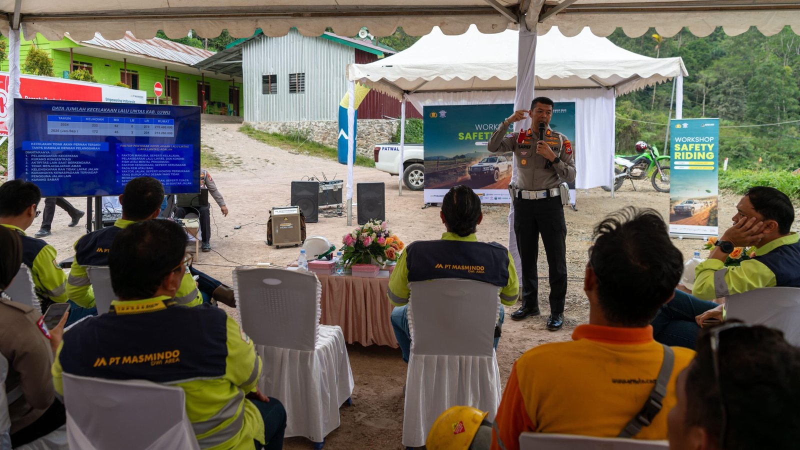 PT Masmindo yang beroperasi di Kecamatan Latimojong, Kabupaten Luwu ini menggandeng Satuan Lalu Lintas (Satlantas) Polres Luwu menggelar Workshop Safety Riding bertema “Smart Riding, Happy Driving” di Camp Awak Mas Project (AMP), Senin (20/10/2025).